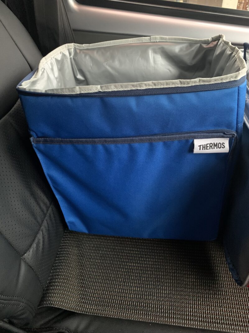 バイクのリアボックスにジャストフィットし、かつ軽バンの助手席でも安定するのが、サーモスの20Lモデルです。