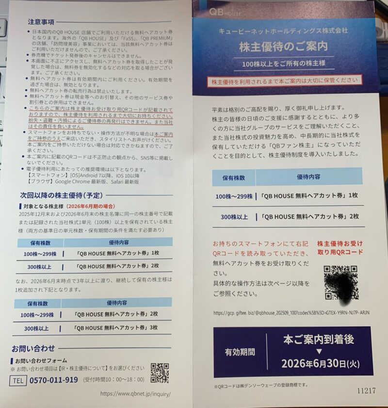 - 優待内容: 無料ヘアカット券(100株以上で1枚)