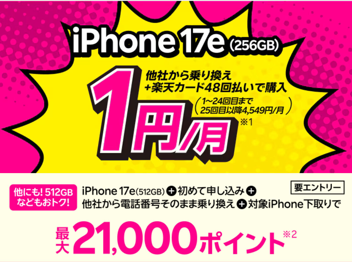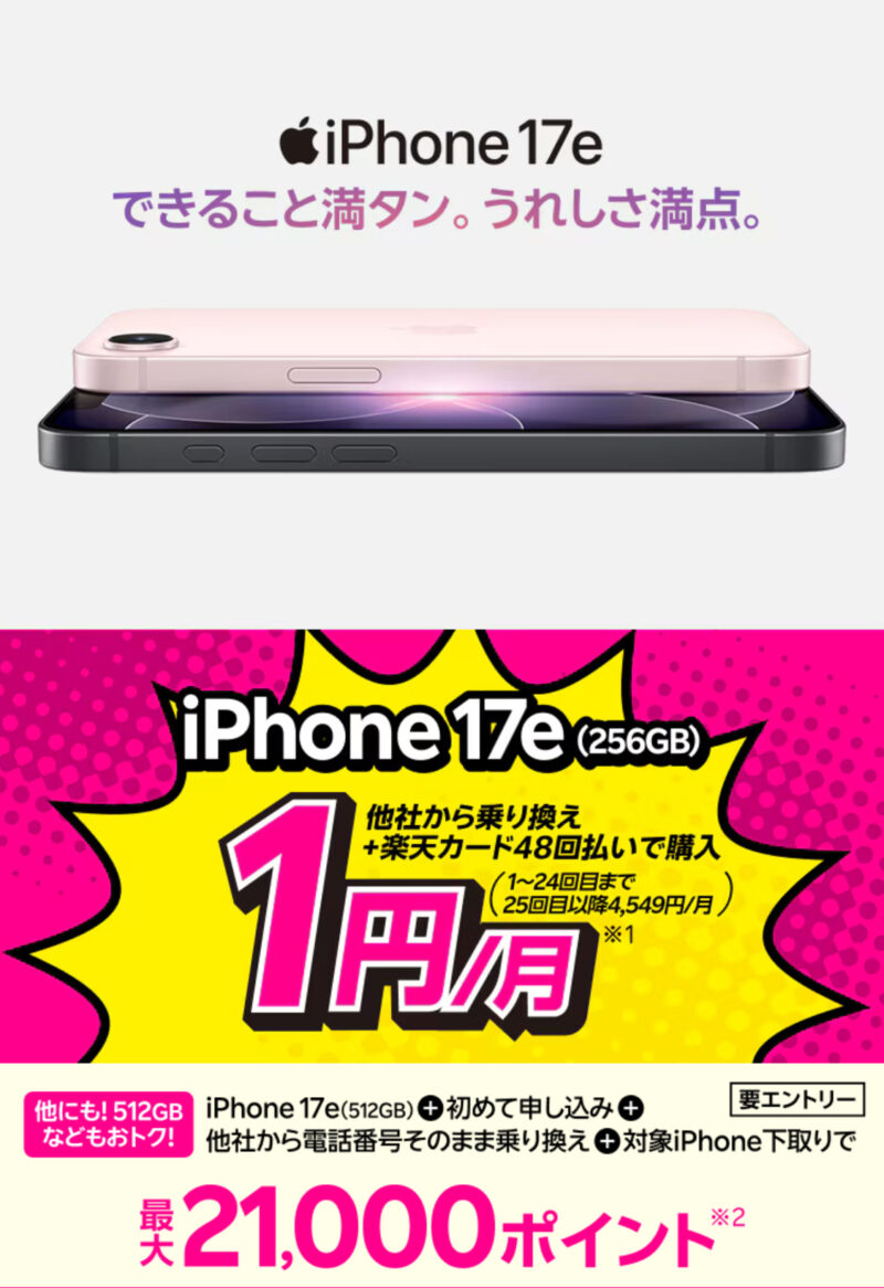 👉 [【公式】楽天モバイル iPhone 17e 特設ページ]